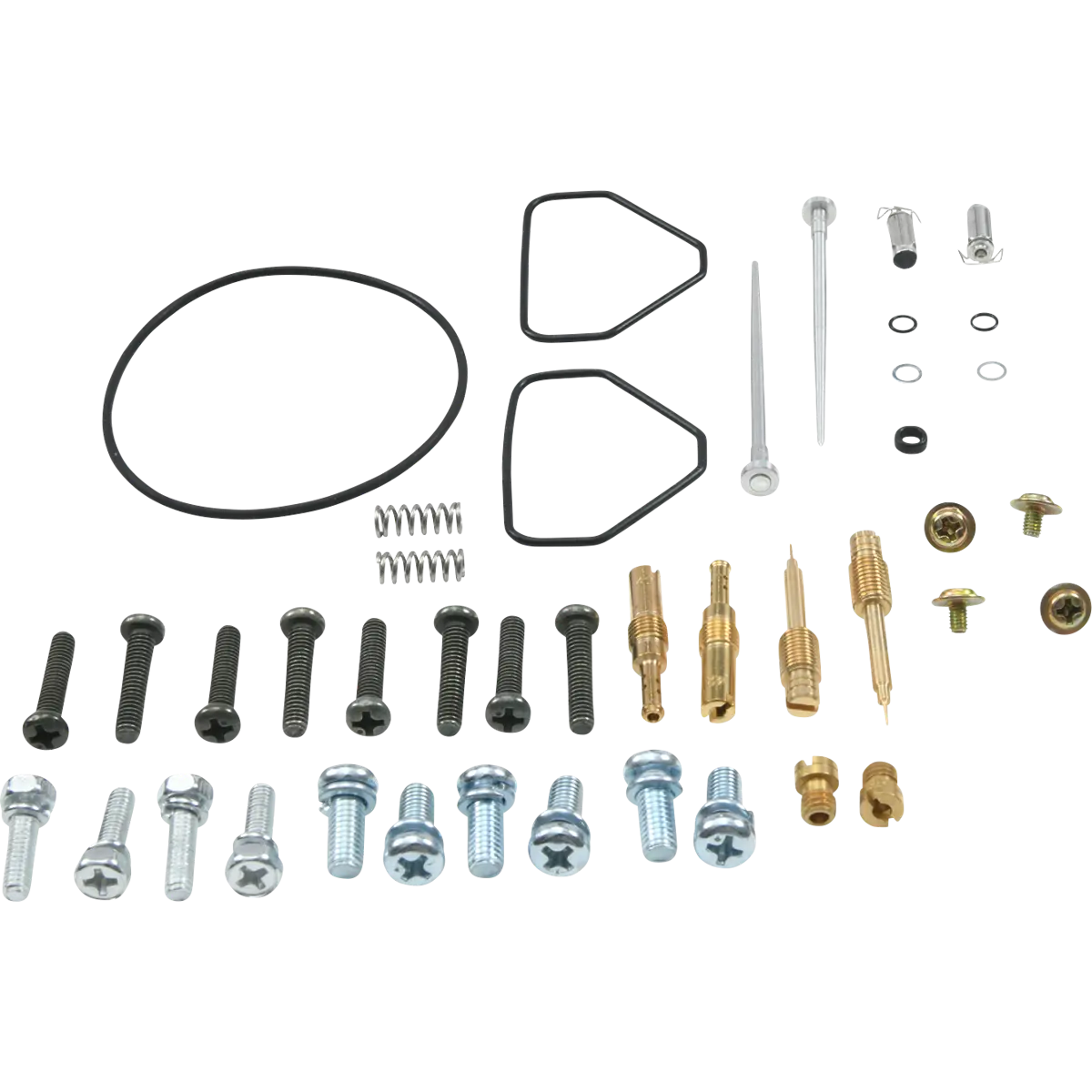 - Il kit include o-ring, guarnizioni, getti, spillo, vite miscela aria/benzina, viti vaschetta galleggiante, sede e spillo galleggiante (spillo conico e altri getti non sono inclusi nel kit)