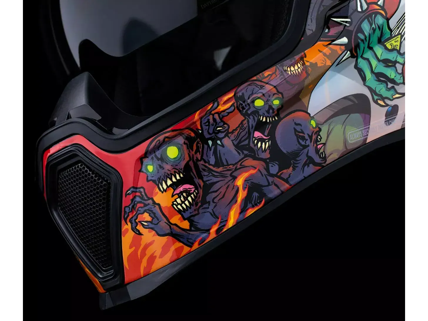 - Removable molded breath deflector and chin curtain