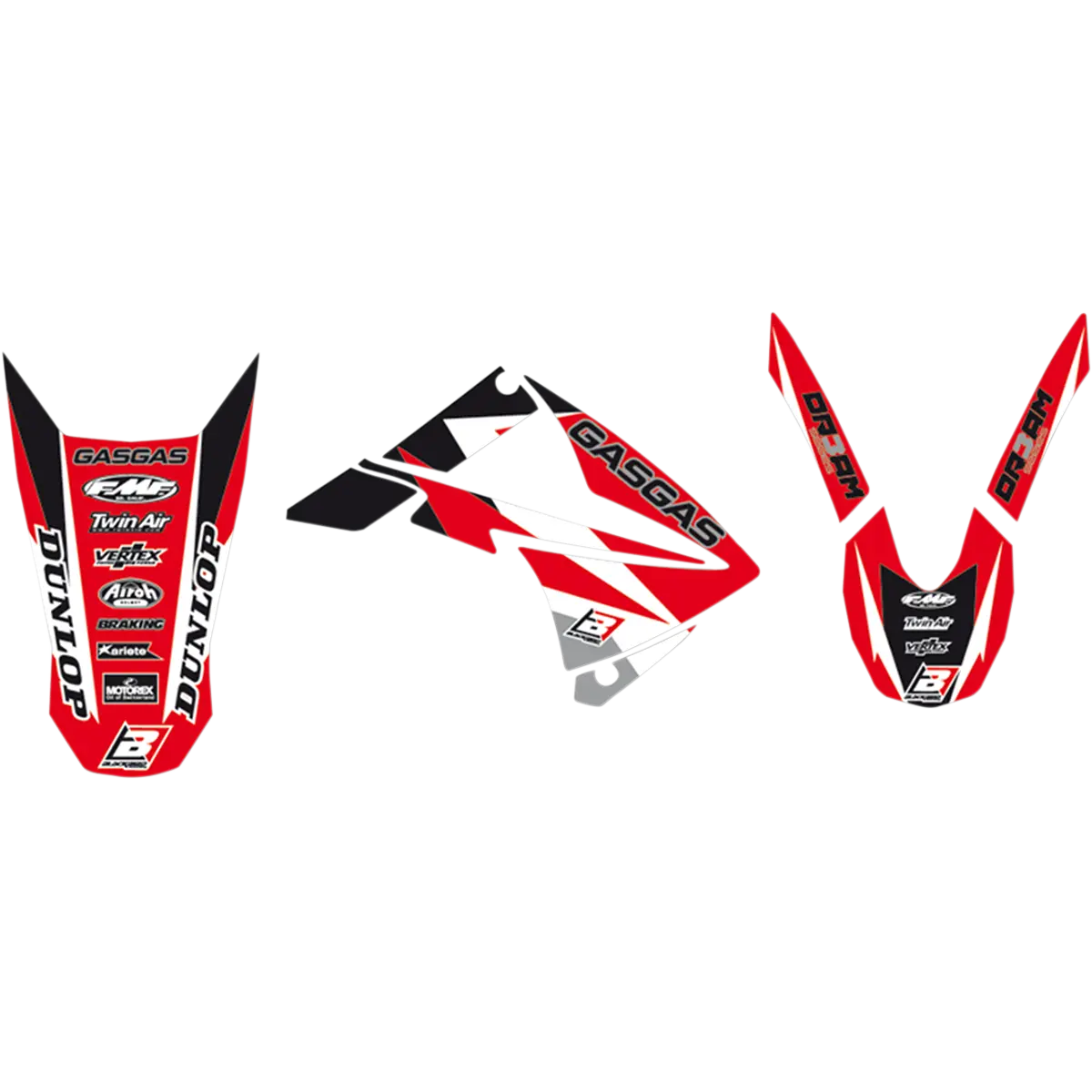 - I kit grafiche includono adesivi per convogliatori radiatore, parafango anteriore e parafango posteriore