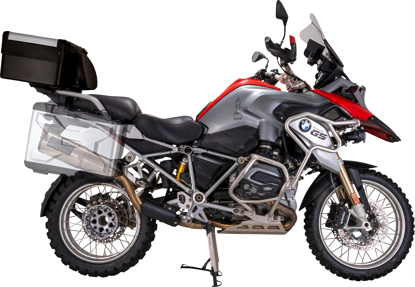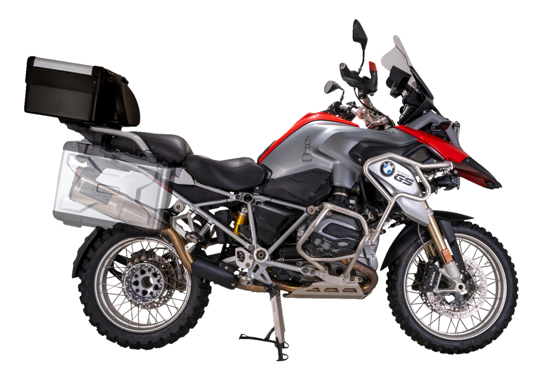 - Compatible with BMW factory panniers and center stand.
