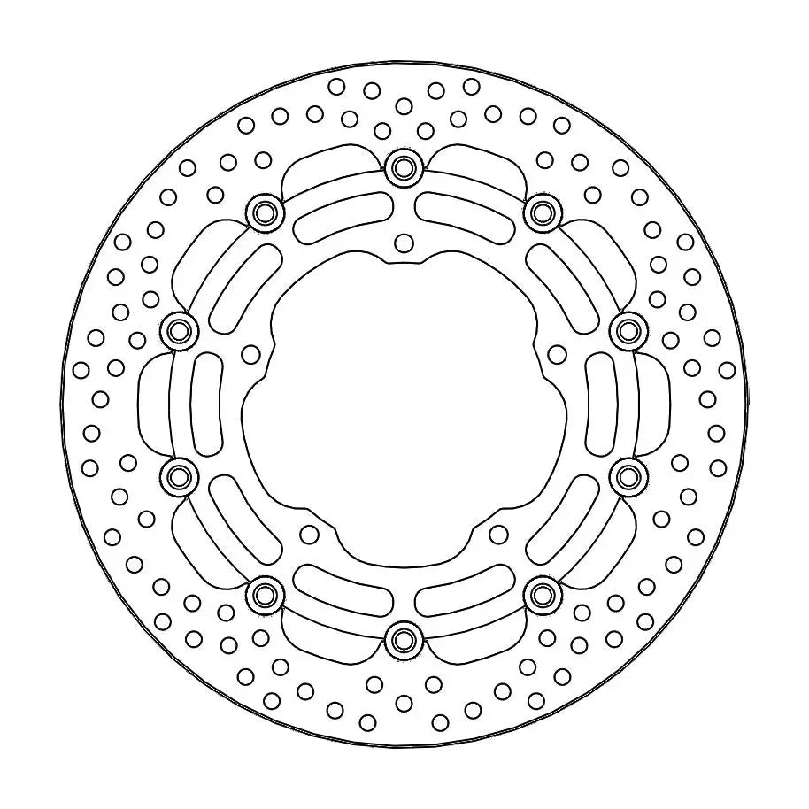 - Il design dell’anello esterno HALO garantisce una dissipazione del calore uniforme in presenza di forte sforzo termico, mentre la superficie di contatto delle pastiglie freno rimane uniformemente pulita.